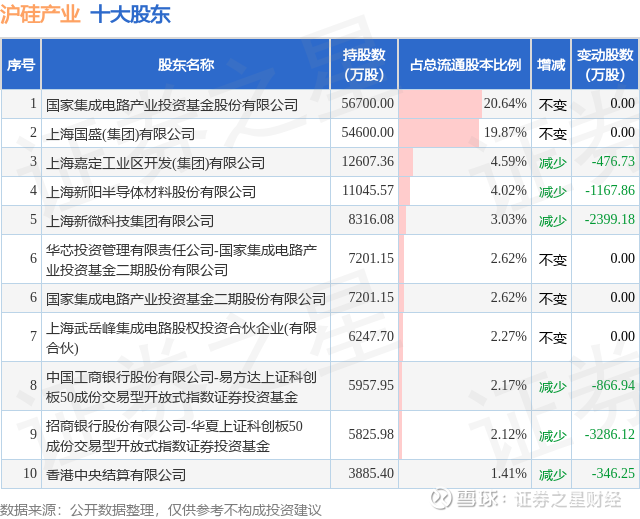 证券之星消息,1月20日沪硅产业发布公告《沪硅产业:沪硅产业关于董事、高级管理人员增持公司股份结果的公告》,其股东国家集成电路产业投资基金股份有限公司于2026年1月16日至2026年1月19日间合计减持1638.77万股,占公司目前总股本的0.4958%,变动期间该股股价上涨0.18%,截止1月19日收盘报22.72元。