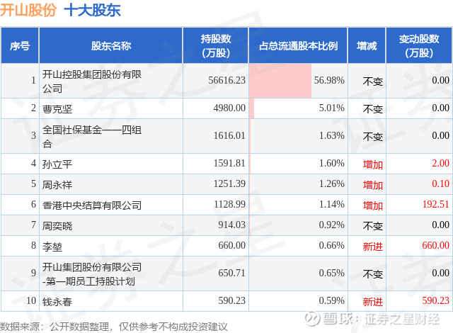 根据开山股份2025年三季报公布的十大股东详情如下: