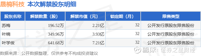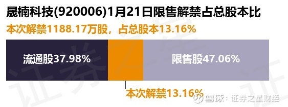 证券之星消息,根据市场公开信息整理,晟楠科技(920006)于1月21日将有1188.17万股限售股份解禁,为公司公开发行原股东限售股份,占公司总股本13.16%。(本次数据根据历史公告整理得出,实际情况以上市公司最新公告为准)本次解禁后,公司还有4249.01万股限售股份,占总股本47.06%。具体如下图所示: