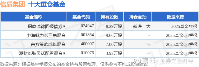 重仓信质集团的公募基金请见下表: