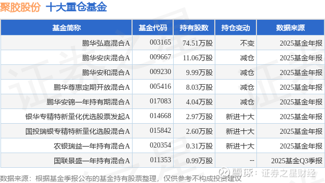 重仓聚胶股份的公募基金请见下表: