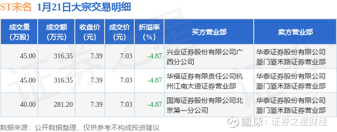 证券之星消息,1月21日ST未名发生大宗交易,交易数据如下: