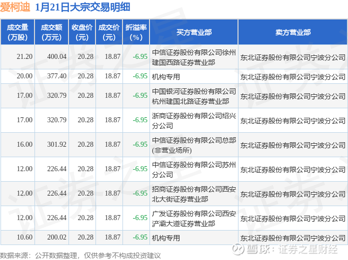 证券之星消息,1月21日爱柯迪发生大宗交易,交易数据如下: