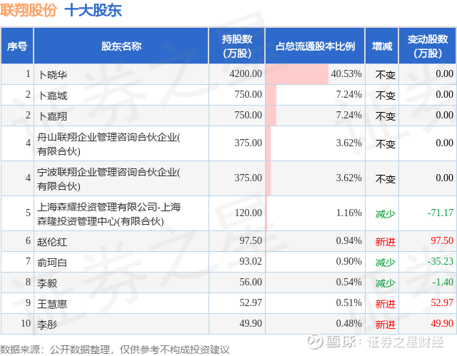 根据联翔股份2025年三季报公布的十大股东详情如下: