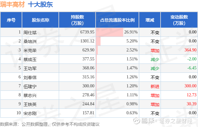 根据瑞丰高材2025年三季报公布的十大股东详情如下: