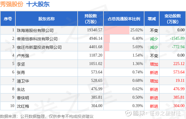 根据秀强股份2025年三季报公布的十大股东详情如下: