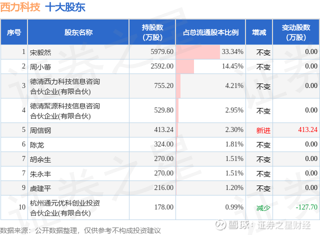 根据西力科技2025年三季报公布的十大股东详情如下: