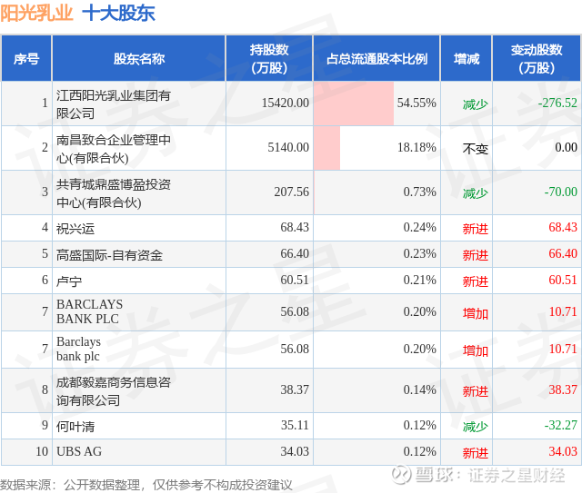 根据阳光乳业2025年三季报公布的十大股东详情如下:
