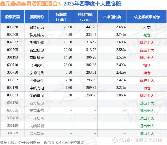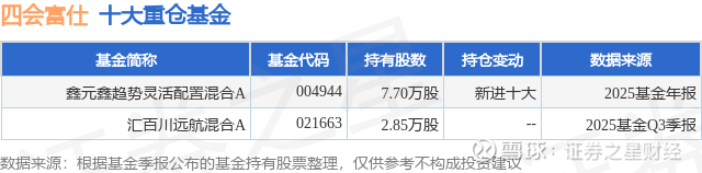 根据2025基金年报公募基金重仓股数据,重仓该股的公募基金共1家,其中持有数量最多的公募基金为鑫元基金的鑫元鑫趋势灵活配置混合A。鑫元鑫趋势灵活配置混合A目前规模为0.68亿元,最新净值1.8947(1月21日),较上一交易日上涨0.34%,近一年上涨30.77%。该公募基金现任基金经理为刘宇涛。刘宇涛在任的基金产品包括:鑫元中证1000指数增强发起式A,管理时间为2022年11月28日至今,期间收益率为45.06%;鑫元国证2000指数增强A,管理时间为2023年8月10日至今,期间收益率为51.33%;鑫元浩鑫增强债券A,管理时间为2023年11月2日至今,期间收益率为7.16%。