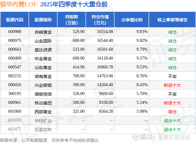根据2025基金年报公募基金重仓股数据,重仓该股的公募基金共5家,其中持有数量最多的公募基金为银华基金的银华内需LOF。银华内需LOF目前规模为16.85亿元,最新净值5.025(1月21日),较上一交易日上涨5.43%,近一年上涨104.1%。该公募基金现任基金经理为王利刚。王利刚在任的基金产品包括:银华成长先锋混合,管理时间为2019年12月31日至今,期间收益率为44.92%;银华创业板两年定期开放混合,管理时间为2020年8月7日至今,期间收益率为-14.33%;银华同力精选混合,管理时间为2021年4月26日至今,期间收益率为51.69%;