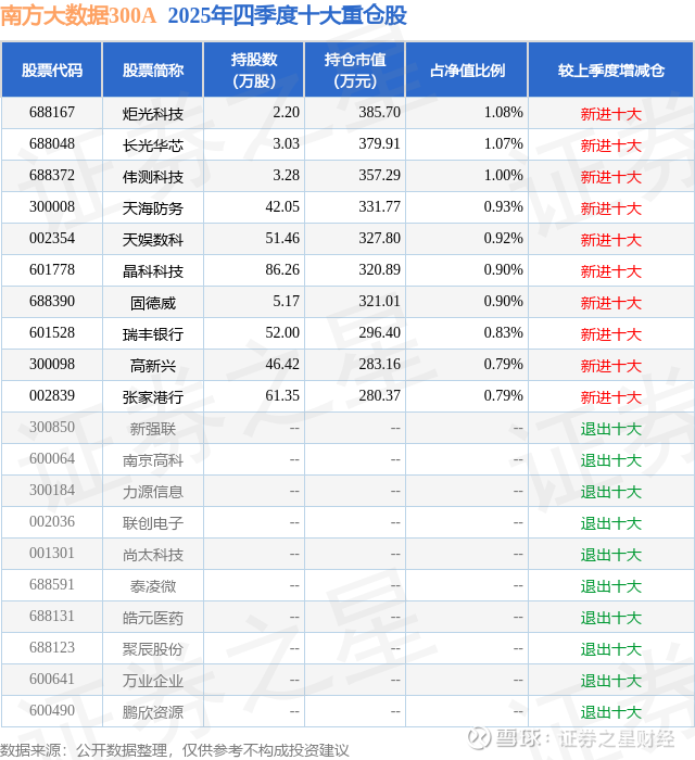 南方大数据300A的前十大重仓股如下: