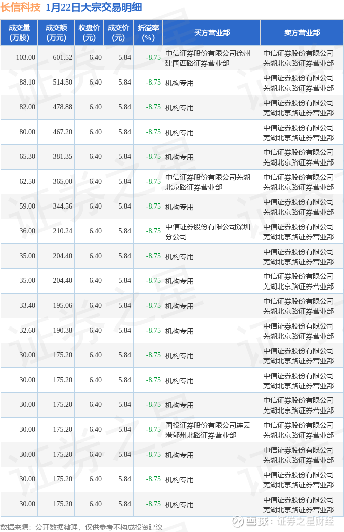 证券之星消息,1月22日长信科技发生大宗交易,交易数据如下: