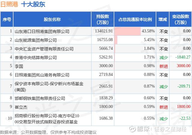 根据日照港2025年三季报公布的十大股东详情如下: