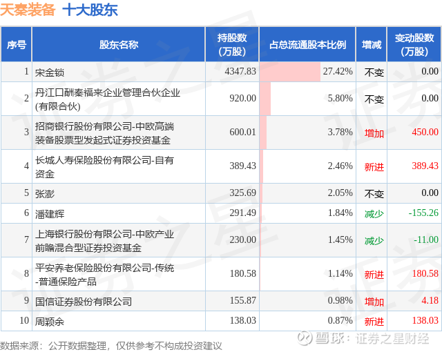 根据天秦装备2025年三季报公布的十大股东详情如下: