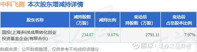 证券之星消息,1月22日中科飞测发布公告《中科飞测:深圳中科飞测科技股份有限公司关于持股5%以上股东权益变动触及1%刻度的提示性公告》,其股东国投(上海)科技成果转化创业投资基金企业(有限合伙)于2025年11月24日至2026年1月22日间合计减持234.87万股,占公司目前总股本的0.6707%,变动期间该股股价上涨68.86%,截止1月22日收盘报197.5元。