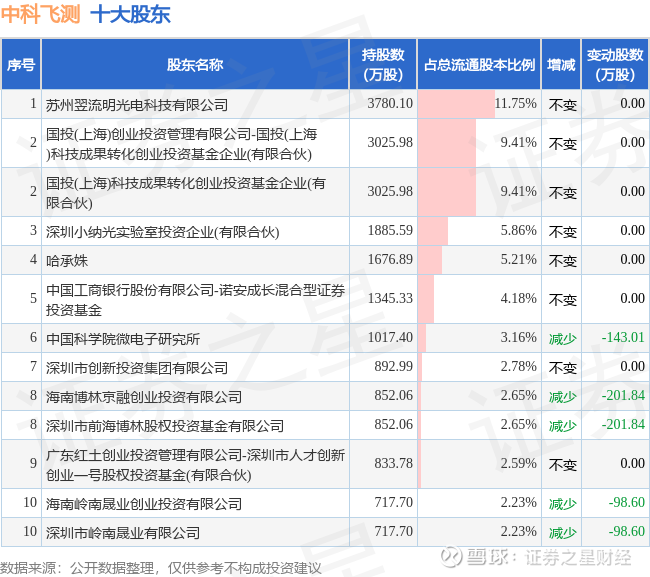 根据中科飞测2025年三季报公布的十大股东详情如下: