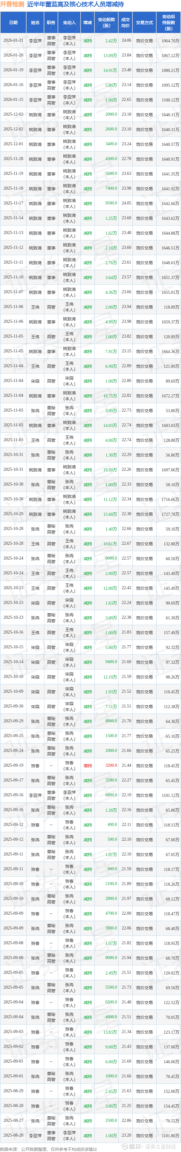 开普检测近半年内的董监高及核心技术人员增减持详情如下: