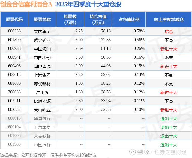 根据2025基金年报公募基金重仓股数据,重仓该股的公募基金共1家,其中持有数量最多的公募基金为创金合信基金的创金合信鑫利混合A。创金合信鑫利混合A目前规模为0.26亿元,最新净值1.505(1月22日),较上一交易日上涨0.03%,近一年上涨2.72%。该公募基金现任基金经理为闫一帆 张贺章。闫一帆在任的基金产品包括:创金合信鑫祺混合A,管理时间为2020年3月20日至今,期间收益率为59.04%;创金合信泰博66个月定开债,管理时间为2020年7月27日至今,期间收益率为22.75%;创金合信鑫日享短债债券A,管理时间为2021年6月2日至今,期间收益率为14.25%。张贺章在任的基金产品包括:创金合信信用红利债券A,管理时间为2020年9月9日至今,期间收益率为24.07%;创金合信双季享6个月持有A,管理时间为2021年12月20日至今,期间收益率为16.4%;创金合信鑫日享短债债券A,管理时间为2023年3月15日至今,期间收益率为7.39%;