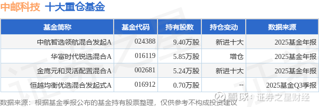 重仓中邮科技的公募基金请见下表: