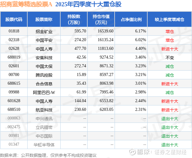 根据2025基金年报公募基金重仓股数据,重仓该股的公募基金共11家,其中持有数量最多的公募基金为招商基金的招商蓝筹精选股票A。招商蓝筹精选股票A目前规模为25.98亿元,最新净值1.0101(1月22日),较上一交易日下跌0.76%,近一年上涨56.75%。该公募基金现任基金经理为王景。王景在任的基金产品包括:招商品质升级混合A,管理时间为2021年3月5日至今,期间收益率为-16.95%;