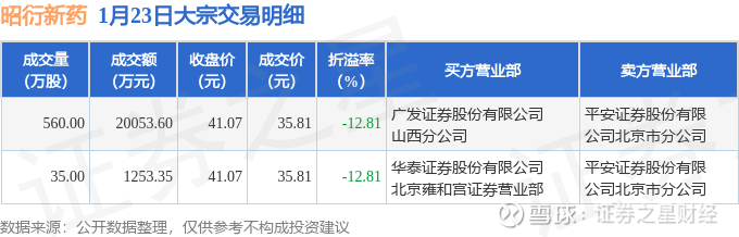 证券之星消息,1月23日昭衍新药发生大宗交易,交易数据如下: