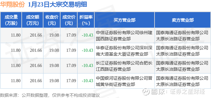 证券之星消息,1月23日华翔股份发生大宗交易,交易数据如下: