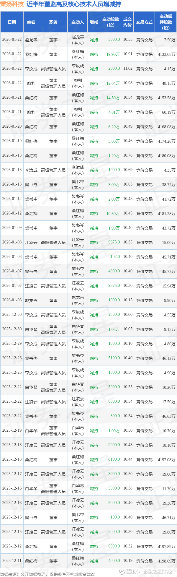秉扬科技近半年内的董监高及核心技术人员增减持详情如下: