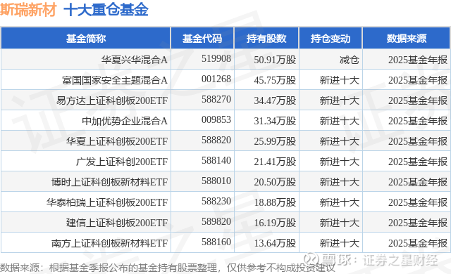 重仓斯瑞新材的前十大公募基金请见下表: