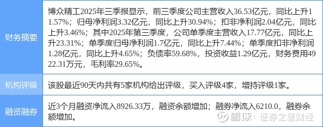 2025年11月3日,东吴证券研究员周尔双,钱尧天,陶泽发布了对博众精工的研报《2025年三季报点评:业绩快速增长,3C设备&换电站业务齐发力》,该研报对博众精工给出“买入”评级。证券之星数据中心根据近三年发布的研报数据计算,该研报作者对此股的盈利预测准确度为71.51%。