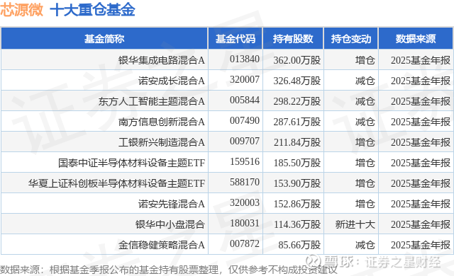 重仓芯源微的前十大公募基金请见下表: