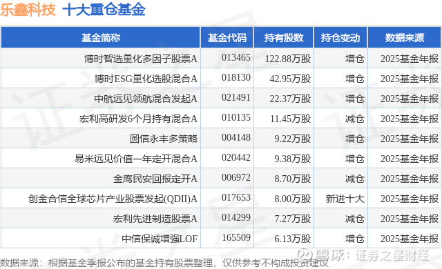 重仓乐鑫科技的前十大公募基金请见下表: