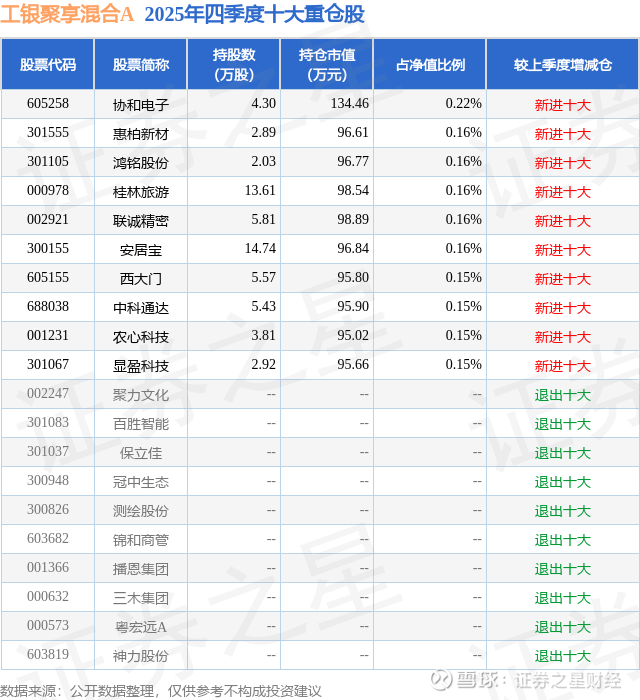 根据2025基金年报公募基金重仓股数据,重仓该股的公募基金共1家,其中持有数量最多的公募基金为工银瑞信基金的工银聚享混合A。工银聚享混合A目前规模为1.43亿元,最新净值1.3562(1月23日),较上一交易日上涨0.37%,近一年上涨36.45%。该公募基金现任基金经理为焦文龙 何顺。焦文龙在任的基金产品包括:工银新价值灵活配置混合A,管理时间为2022年11月25日至今,期间收益率为28.82%;工银新机遇灵活配置混合A,管理时间为2022年11月25日至今,期间收益率为10.35%;工银双债增强债券,管理时间为2024年11月8日至今,期间收益率为30.51%。何顺在任的基金产品包括:工银新价值灵活配置混合A,管理时间为2024年4月1日至今,期间收益率为21.82%;工银中证1000指数增强A,管理时间为2024年5月15日至今,期间收益率为84.6%;工银瑞信中证港股通高股息精选ETF,管理时间为2024年5月30日至今,期间收益率为10.95%。