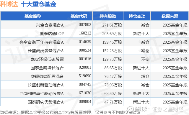 重仓科博达的前十大公募基金请见下表: