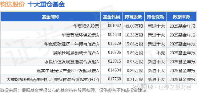 根据2025基金年报公募基金重仓股数据,重仓该股的公募基金共7家,其中持有数量最多的公募基金为华夏基金的华夏领先股票。华夏领先股票目前规模为7.83亿元,最新净值0.719(1月23日),较上