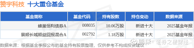 根据2025基金年报公募基金重仓股数据,重仓该股的公募基金共2家,其中持有数量最多的公募基金为蜂巢基金的蜂巢恒利债券A。蜂巢恒利债券A目前规模为1.9亿元,最新净值1.1962(1月23日),较上一交易日上涨0.15%,近一年上涨4.6%。该公募基金现任基金经理为李海涛 李铮男。李海涛在任的基金产品包括:蜂巢添鑫纯债A,管理时间为2