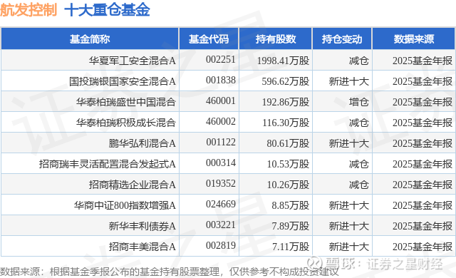 重仓航发控制的前十大公募基金请见下表: