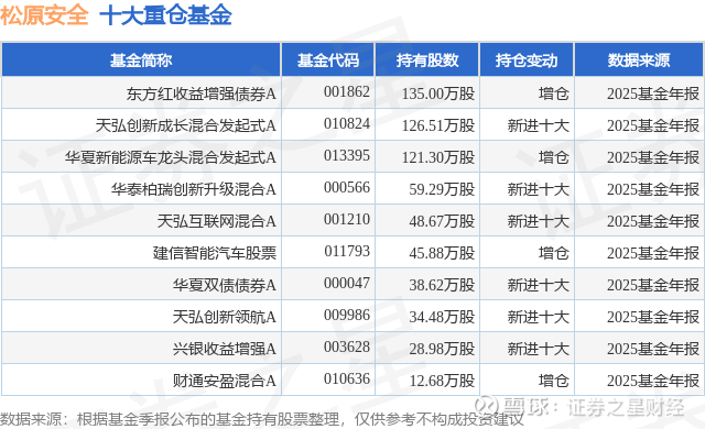重仓松原安全的前十大公募基金请见下表: