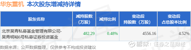 证券之星消息,1月26日华东重机发布公告《华东重机:关于股东减持计划期限届满暨减持结果的公告》,其股东北京昊青私募基金管理有限公司-昊青明裕6号私募证券投资基金于2025年10月28日至2026年1月26日间合计减持482.29万股,占公司目前总股本的0.4786%,变动期间该股股价上涨1.2%,截止1月26日收盘报7.59元。