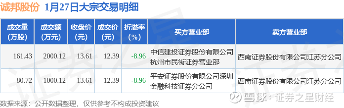 证券之星消息,1月27日诚邦股份发生大宗交易,交易数据如下: