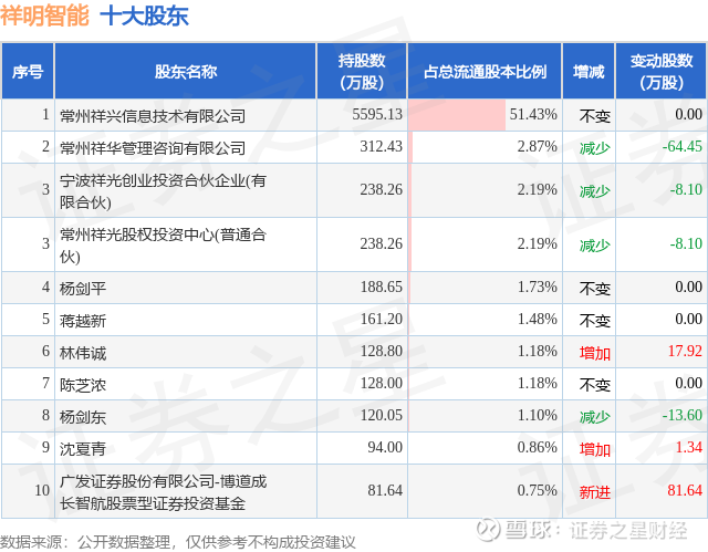 根据祥明智能2025年三季报公布的十大股东详情如下: