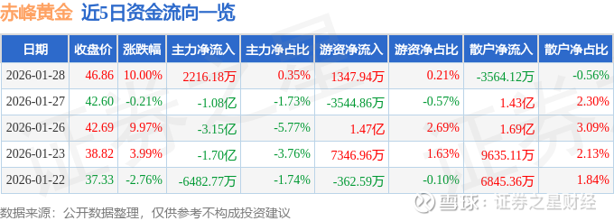 证券之星消息,赤峰黄金1月28日涨停收盘,收盘价46.86元。该股于14点34分涨停,1次打开涨停,截止收盘封单资金为1026.61万元,占其流通市值0.01%。