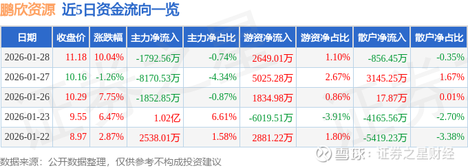 证券之星消息,鹏欣资源1月28日涨停收盘,收盘价11.18元。该股于13点2分涨停,10次打开涨停,截止收盘封单资金为1176.14万元,占其流通市值0.05%。