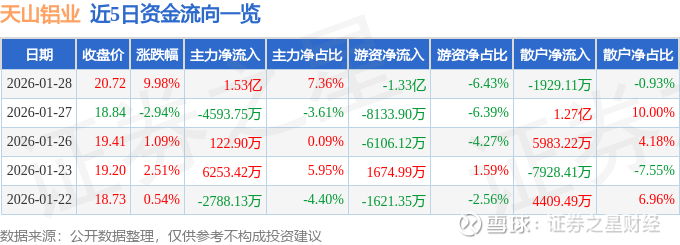 证券之星消息,天山铝业1月28日涨停收盘,收盘价20.72元。该股于13点52分涨停,8次打开涨停,截止收盘封单资金为837.88万元,占其流通市值0.01%。