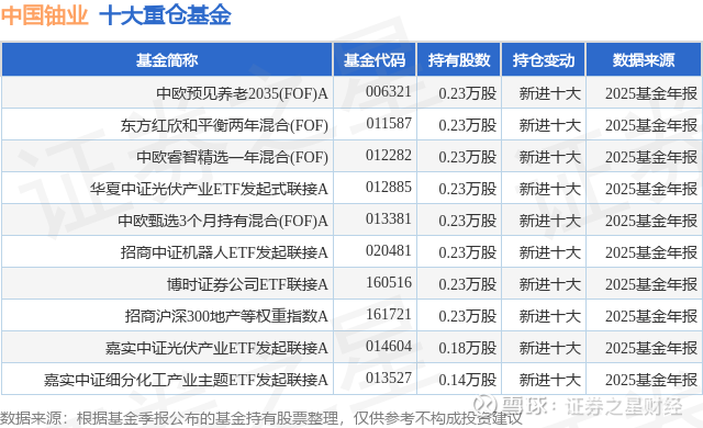 根据2025基金年报公募基金重仓股数据,重仓该股的公募基金共12家,其中持有数量最多的公募基金为中欧基金的中欧预见养老2035(FOF)A。中欧预见养老2035(FOF)A目前规模为5.84亿元,最新净值1.7407(1月23日),较上一交易日上涨0.12%,近一年上涨16.31%。该公募基金现任基金经理为桑磊。桑磊在任的基金产品包括:中欧预见养老2050五年持有(FOF)A,管理时间为2019年5月10日至今,期间收益率为53.71%;中欧睿智精选一年混合(FOF),管理时间为2021年6月28日至今,期间收益率为-1.98%;中欧甄选3个月持有混合(FOF)A,管理时间为2021年10月28日至今,期间收益率为3.19%。