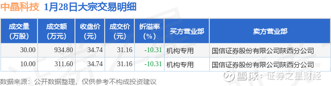 证券之星消息,1月28日中晶科技发生大宗交易,交易数据如下: