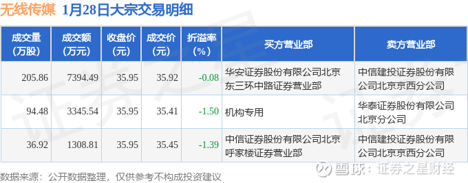 证券之星消息,1月28日无线传媒发生大宗交易,交易数据如下: