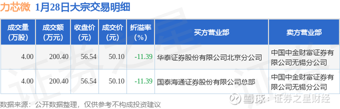 证券之星消息,1月28日力芯微发生大宗交易,交易数据如下:
