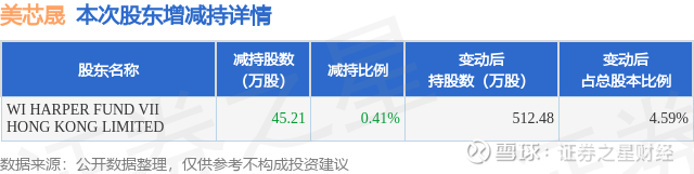证券之星消息,1月28日美芯晟发布公告《美芯晟:股东减持股份结果公告》,其股东WI HARPER FUND VII HONG KONG LIMITED于2026年1月6日至2026年1月27日间合计减持45.21万股,占公司目前总股本的0.4053%,变动期间该股股价上涨10.64%,截止1月27日收盘报44.7元。