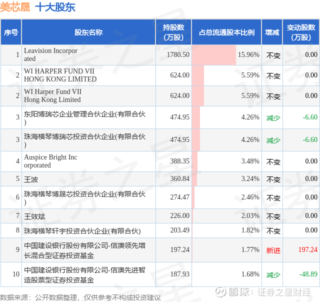 根据美芯晟2025年三季报公布的十大股东详情如下: