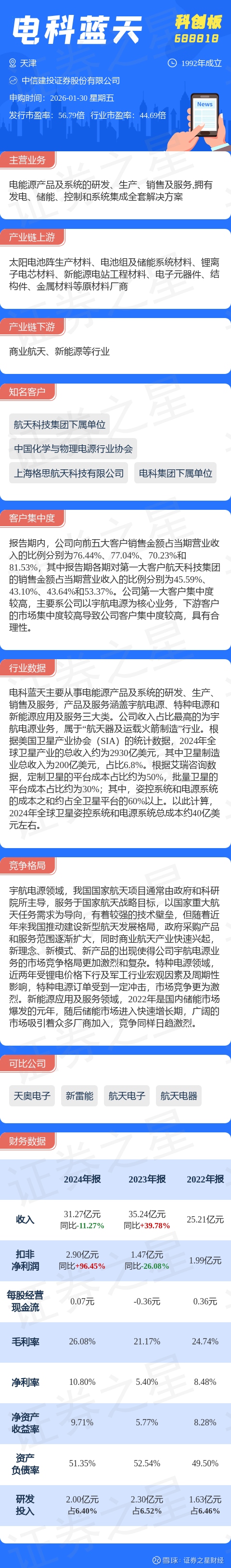 证券之星消息,电科蓝天1月30日网上申购,申购代码为787818,中签号公布日期为2月3日。该股概况请见下图: